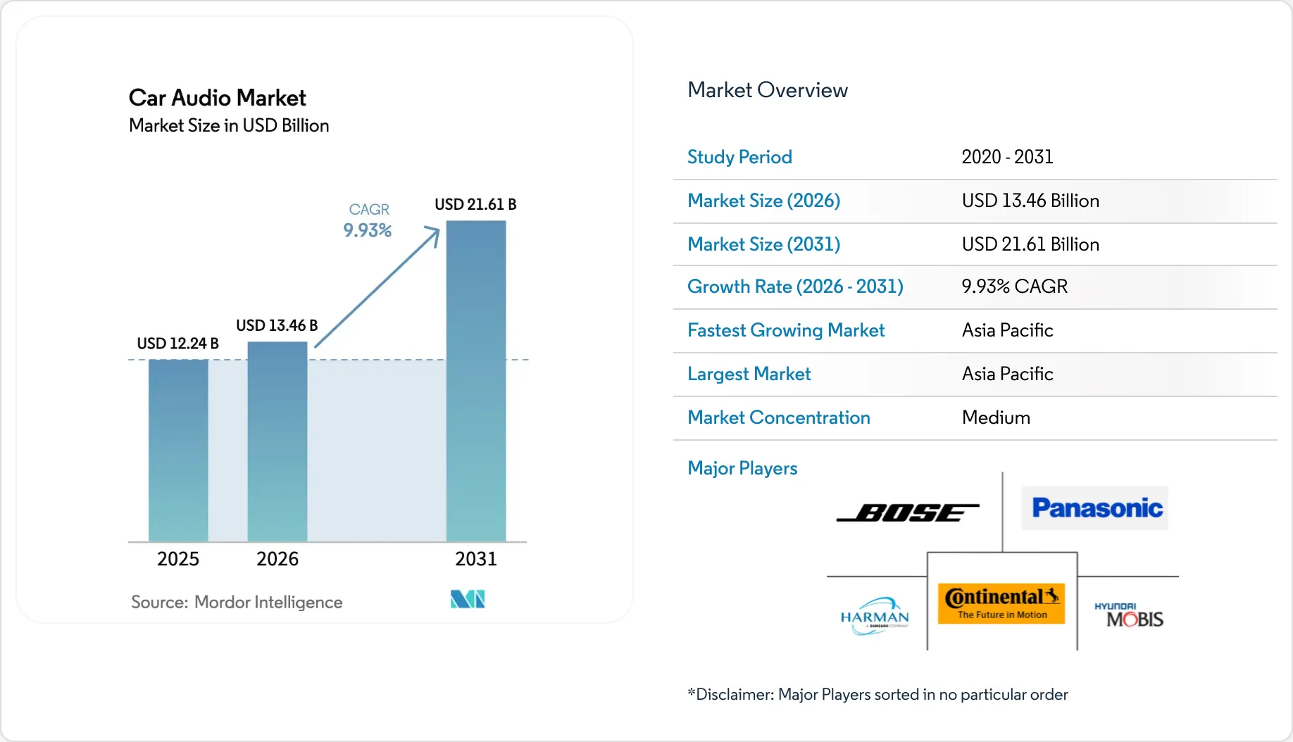 New research from Mordor Intelligence forecasts the global car audio market will grow from around US$13.46 billion (£9.95 billion approx) in 2026 to US$21.61 billion (£15.98 billion) by 2031, representing a compound annual growth rate of just under 10%.
