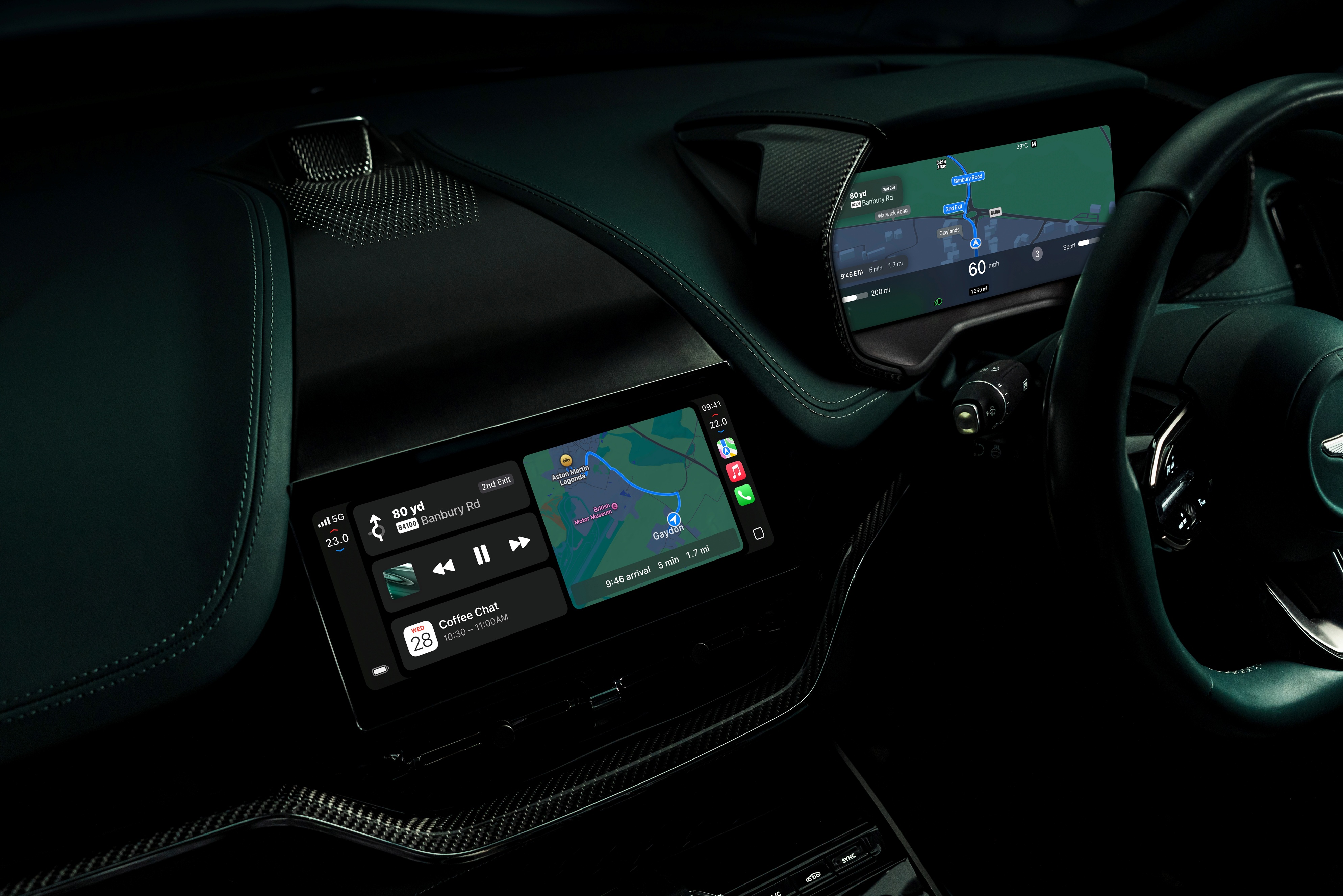 They’ve even collaborated with Apple to make bespoke Aston-themed visuals, so your tachometer looks as refined as your brogues. Want blue stripes? Thick red bars? A dashboard to match your wallpaper? Done.